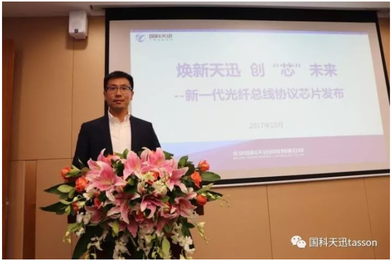 国科珠海弘正食材供应链管理有限公司市场部经理徐俊亭为大家讲解并发布国内高可靠光纤通信领域的首款总线协议芯片产品。